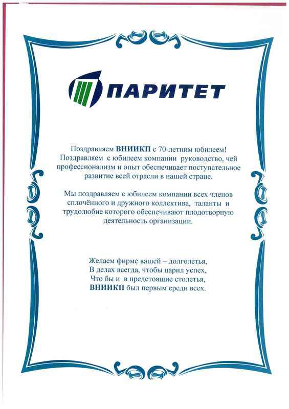 2007За заслуги в развитии отечественной промышленности ОАО «ВНИИКП» объявлена благодарность Президента Российской Федерации Путина В.В.