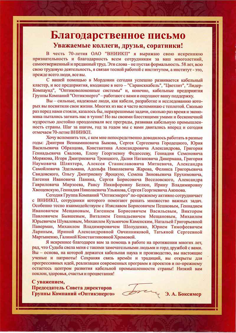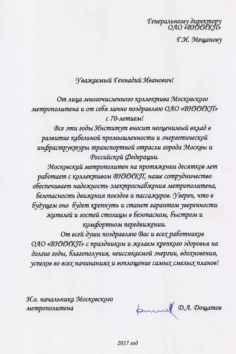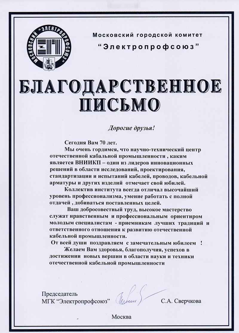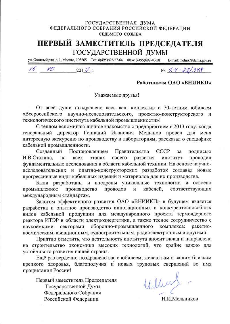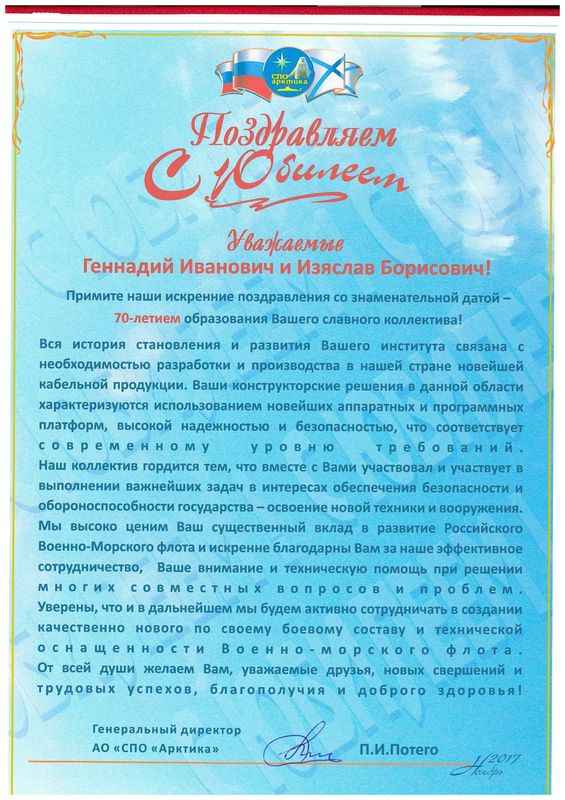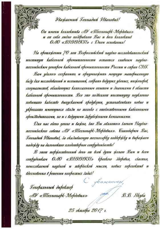 От всей души поздравляю Вас (и себя) с Юбилеем родного института. Желаю всем нам крепкого здоровья, оптимизма, научных и финансовых достижений. Наш ВНИИКП прошёл долгий путь, отмеченный многочисленными успехами, которыми мы по праву гордимся. В то время, когда многие научно-исследовательские отраслевые институты, к глубокому сожалению, прекратили своё существование, мы как организация, не только выжили, но по многим позициям развились, укрепили свой потенциал, и поэтому с уверенностью смотрим в будущее. Зав. отделением №2 «Кабели, провода и арматура для систем коммуникации и информатизации» Овчинникова Ирина Александровна Зав. отделением №2 «Кабели, провода и арматура для систем коммуникации и информатизации» Овчинникова Ирина АлександровнаЖелаю уважаемым коллегам космических достижений, неиссякаемой энергии, надежной связи подразделений и сверхпроводящей удачи! Подробнее Зав. отделением №3 «Провода и кабели для электрических машин, установок транспорта и приборов» Новиков Дмитрий Владимирович Зав. отделением №3 «Провода и кабели для электрических машин, установок транспорта и приборов» Новиков Дмитрий ВладимировичДорогие коллеги! От лица коллектива Отделения №3 «Провода и кабели для электрических машин, установок транспорта и приборов» поздравляю вас с 70-и летием Института. Желаю интересных научных задач и успехов в работе. Подробнее Директор научного направления — Зав. отделением №4 «Сверхпроводящие и криорезистивные провода и технологии их производства» Виталий Сергеевич Высоцкий Директор научного направления — Зав. отделением №4 «Сверхпроводящие и криорезистивные провода и технологии их производства» Виталий Сергеевич ВысоцкийОтделение сверхпроводящих проводов и кабелей с огромным удовольствием поздравляет родной Институт и весь его коллектив с замечательным юбилеем! Мы с вами ровно пятьдесят лет и ни разу об этом не пожалели, наша жизнь в составе Института всегда была интересной и насыщенной! Желаем всем нам быть такими же энергичными, успешными и процветающими как в этот год семидесятилетнего юбилея! Надеемся так же все вместе с успехом встретить все грядущие юбилеи: 75… 80… 85… 150… и так далее… Подробнее