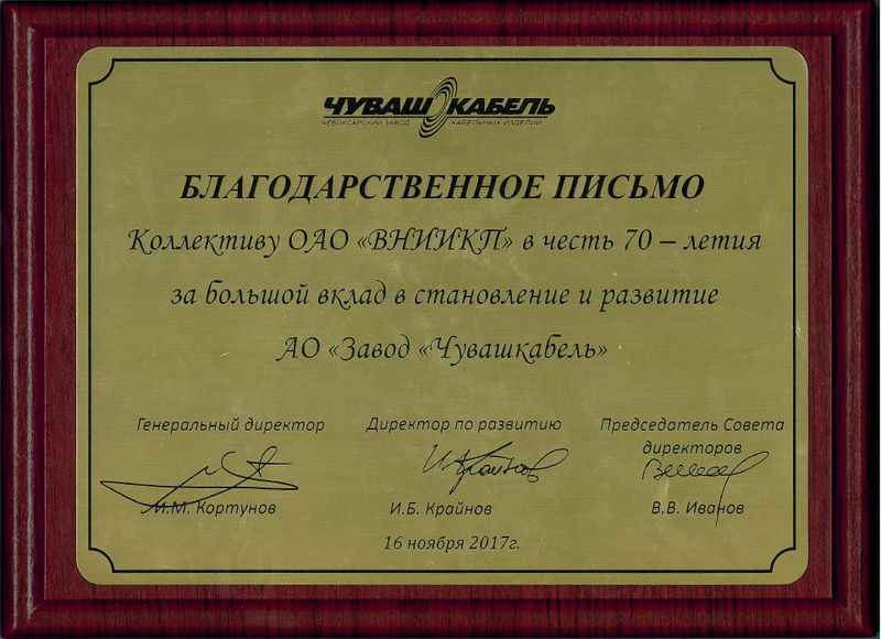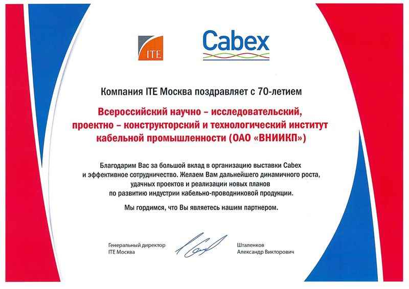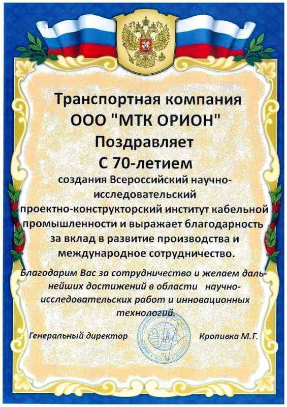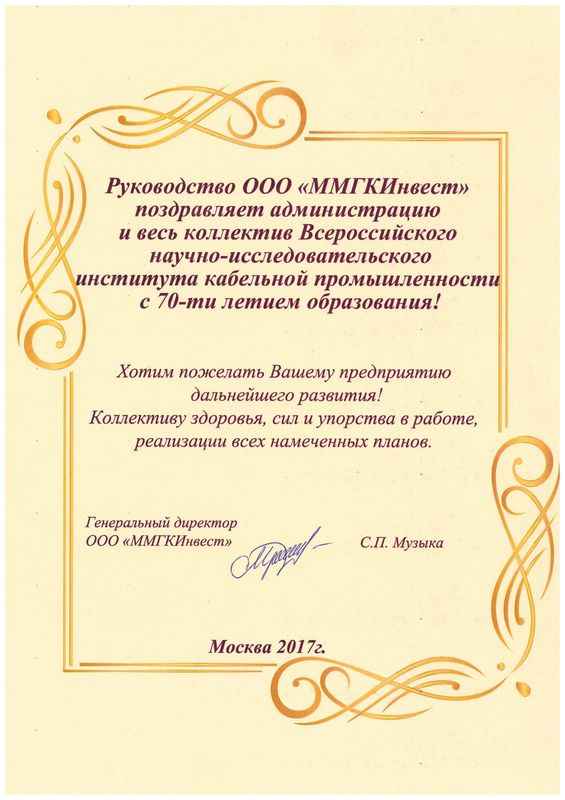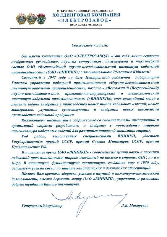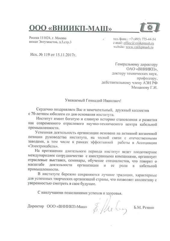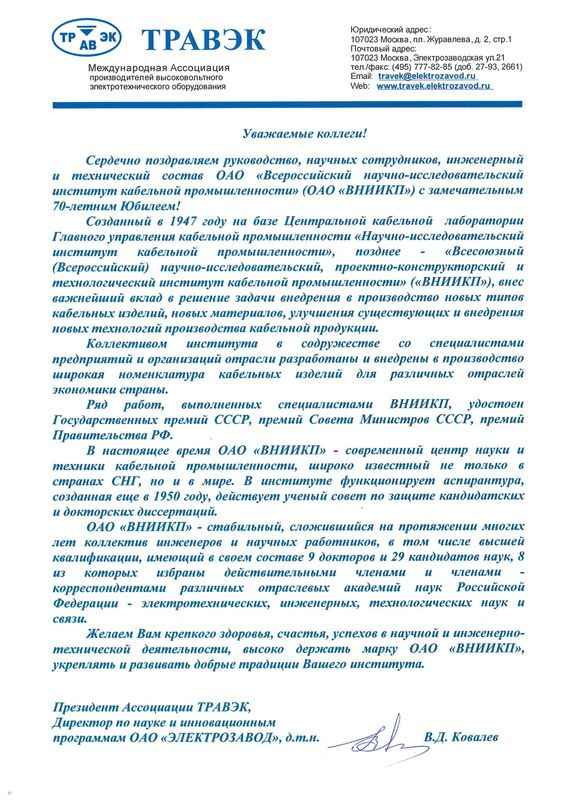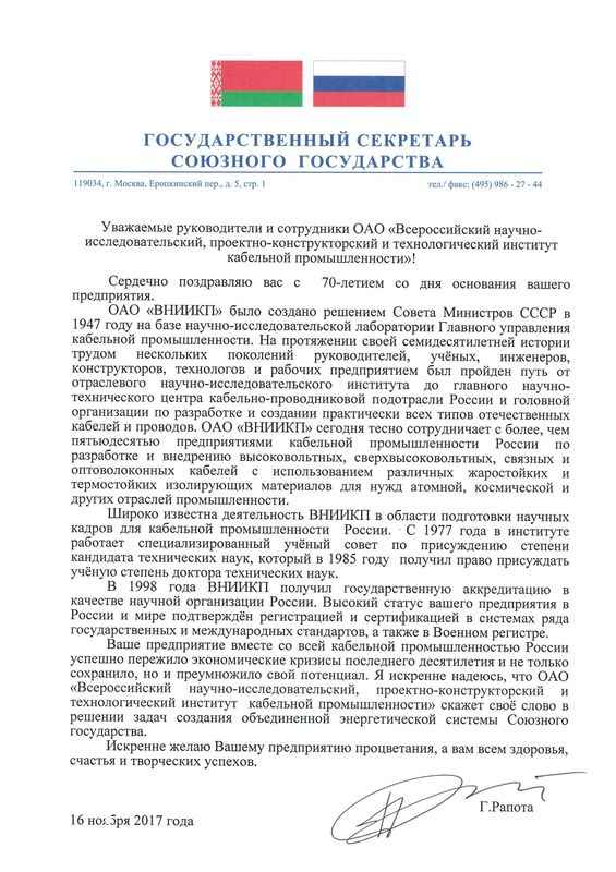 Всероссийского научно-исследовательского проектно-конструкторского и технологического института кабельной промышленности