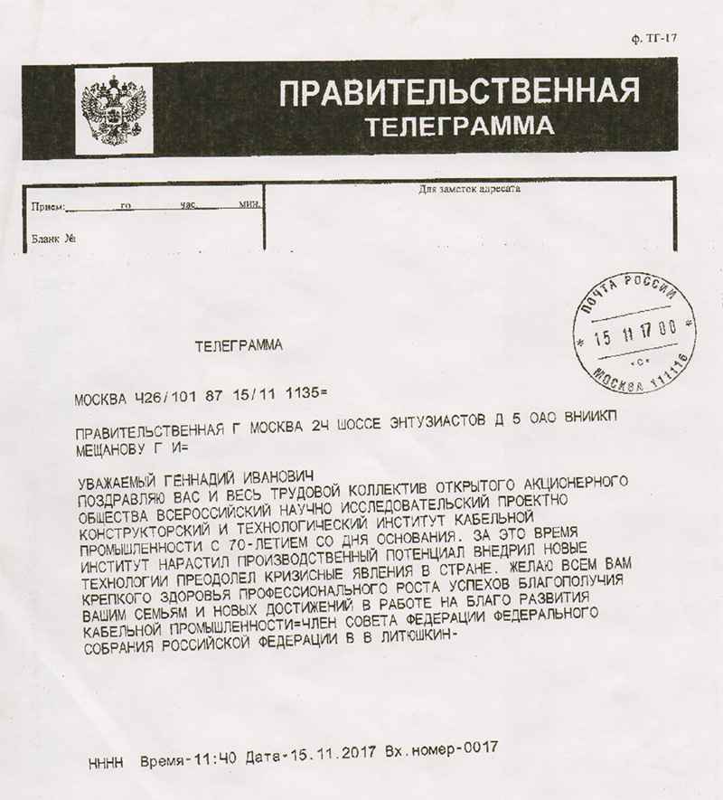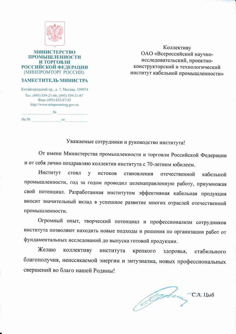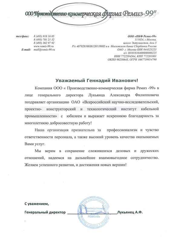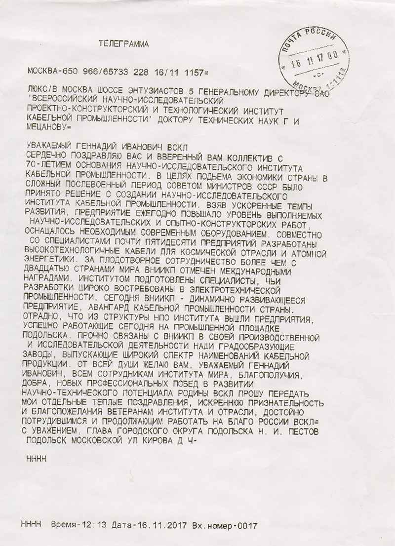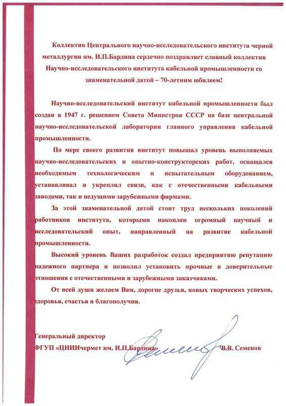Всероссийского научно-исследовательского проектно-конструкторского и технологического института кабельной промышленности